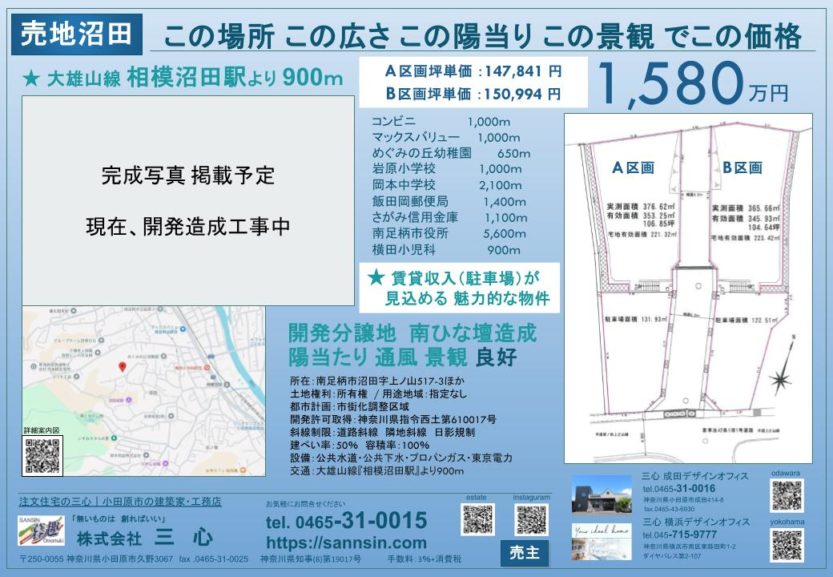 | 交通 | 大雄山線「相模沼田駅」より900m | 建ぺい率/容積率 | 50% / 100% |