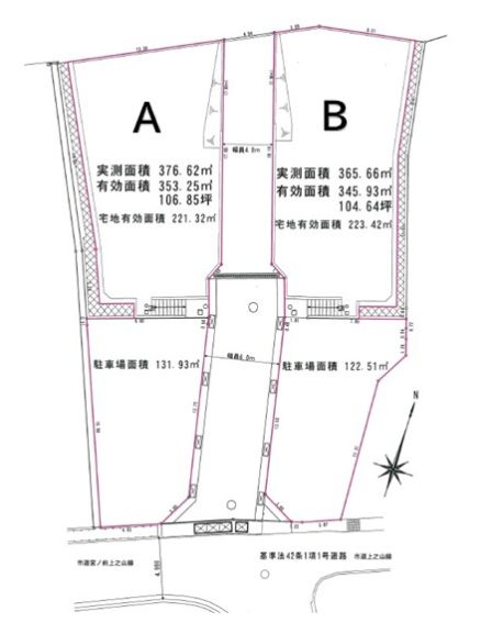 | 土地面積(m2) | 実測面積:A区画 376.62㎡/B区画 365.66㎡ | 都市計画 | 市街化調整区域 |