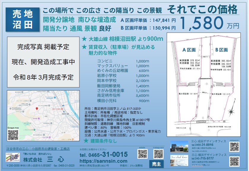 2026.01.30 南足柄市沼田 2区画1,580万円|売地 季節を感じるロケーション ゆとりある平家や2世帯住宅にも、いろんな建物プランが可能です 広い庭園、ガレージなど趣味を楽しむライフスタイルが叶います!