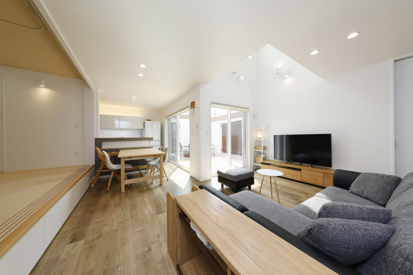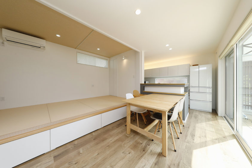 ・リビングの仕切れる「小上がり畳コーナ」。下は大容量の引き出し収納。