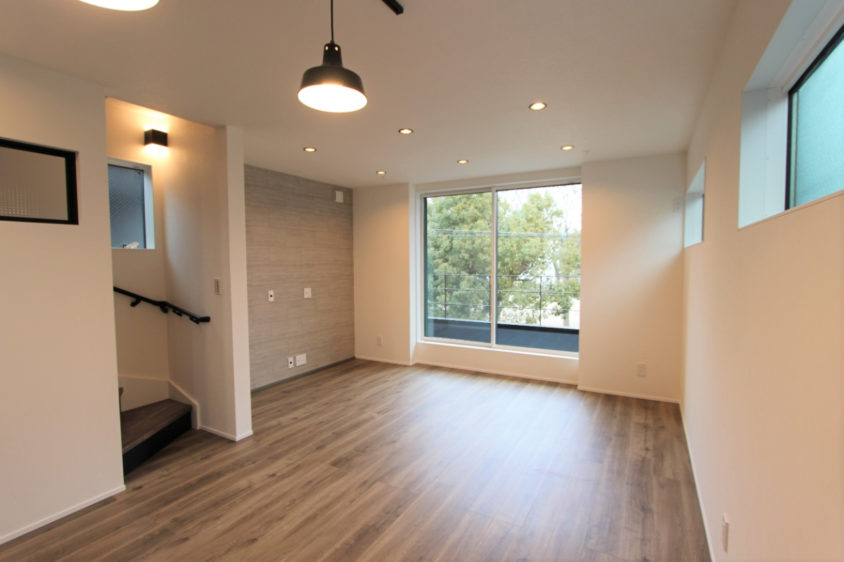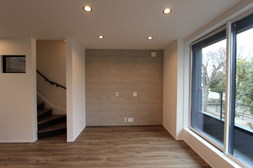 ご家族5人が暮らす狭小3階建て住宅。 2Fリビングからの借景と、屋上からの眺望が特徴です。 1Fワークスペースは個室で設計しました。